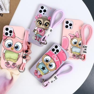 Симпатичный Сова Мультяшный ремешок Ремешок для телефона Чехол для iPhone 13 12 11 Pro Max Xiaomi Mi