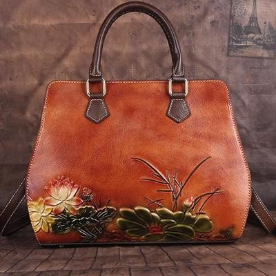 титульная страница > Сумки и чемоданы > Ручной работы Первый слой Коровья кожа Женская сумка 2021 Новый винтаж Тиснение Сумки для плеча Боль